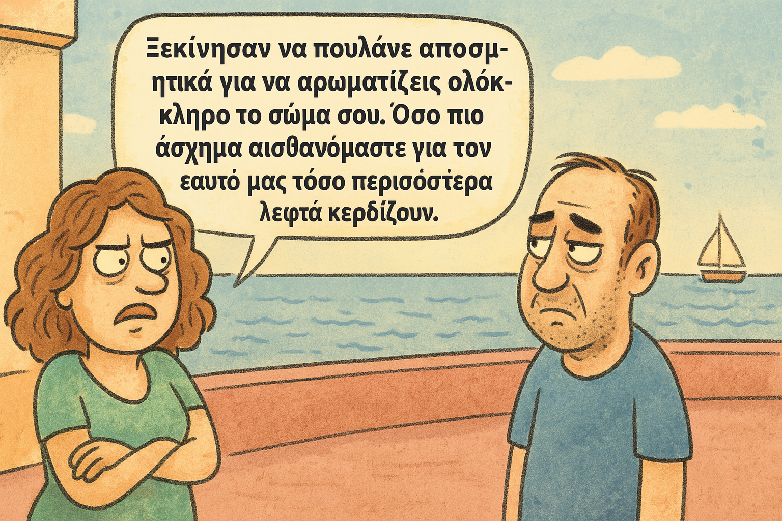 Ξεκίνησαν να πουλάνε αποσμητικά για να αρωματίζεις ολόκληρο το σώμα σου. Όσο πιο άσχημα αισθανόμαστε για τον εαυτό μας τόσο περισσότερα λεφτά κερδίζουν.
