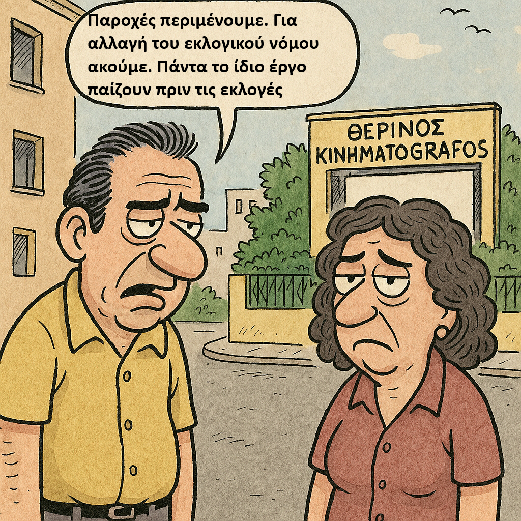 Παροχές περιμένουμε. Για αλλαγή του εκλογικού νόμου ακούμε. Πάντα το ίδιο έργο παίζουν πριν τις εκλογές