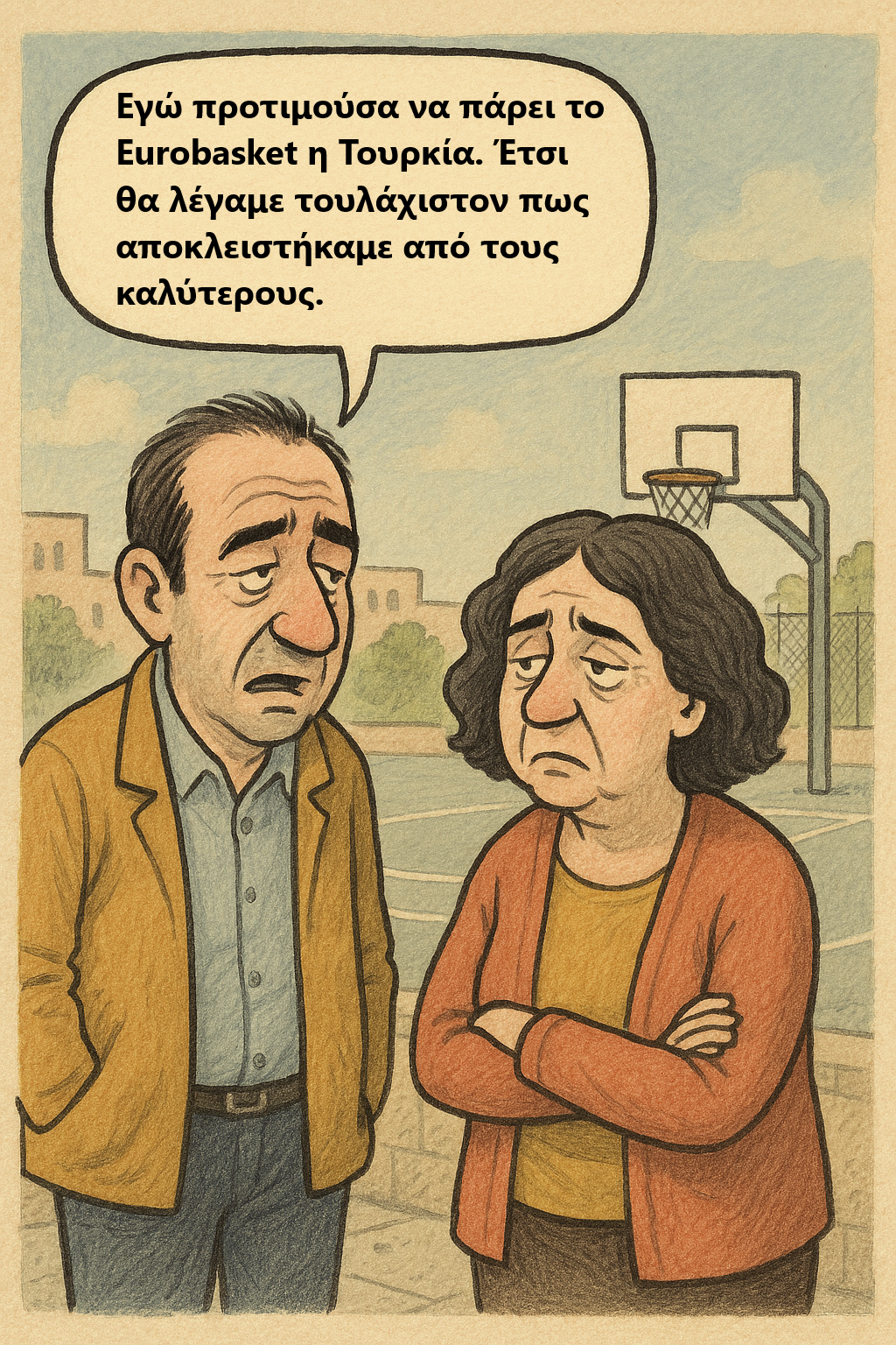 Εγώ προτιμούσα να πάρει το Eurobasket η Τουρκία. Έτσι θα λέγαμε τουλάχιστον πως αποκλειστήκαμε από τους καλύτερους.