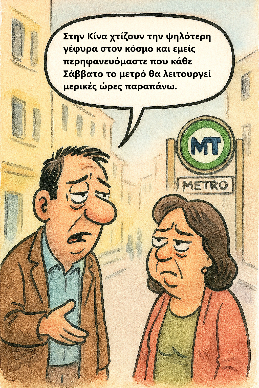 Στην Κίνα χτίζουν την ψηλότερη γέφυρα στον κόσμο και εμείς περηφανευόμαστε που κάθε Σάββατο το μετρό θα λειτουργεί μερικές ώρες παραπάνω.